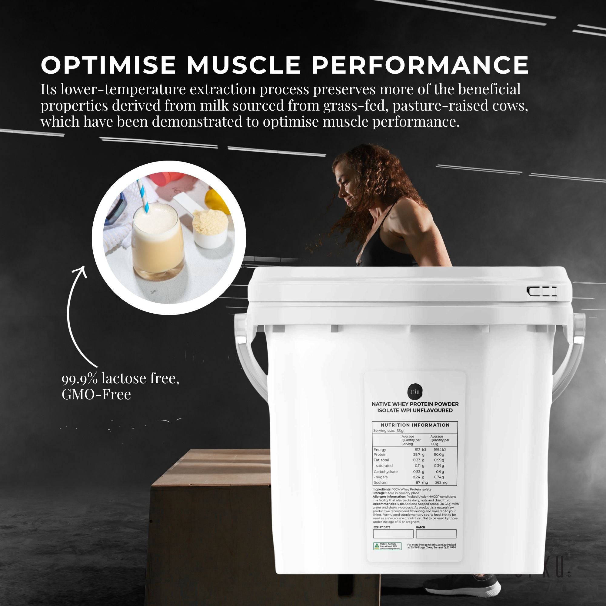 Native WPI offers the latest in whey protein technology. Its lower-temperature extraction process preserves more of the beneficial properties derived from milk sourced from grass-fed, pasture-raised cows, which have been demonstrated to optimise muscle performance.