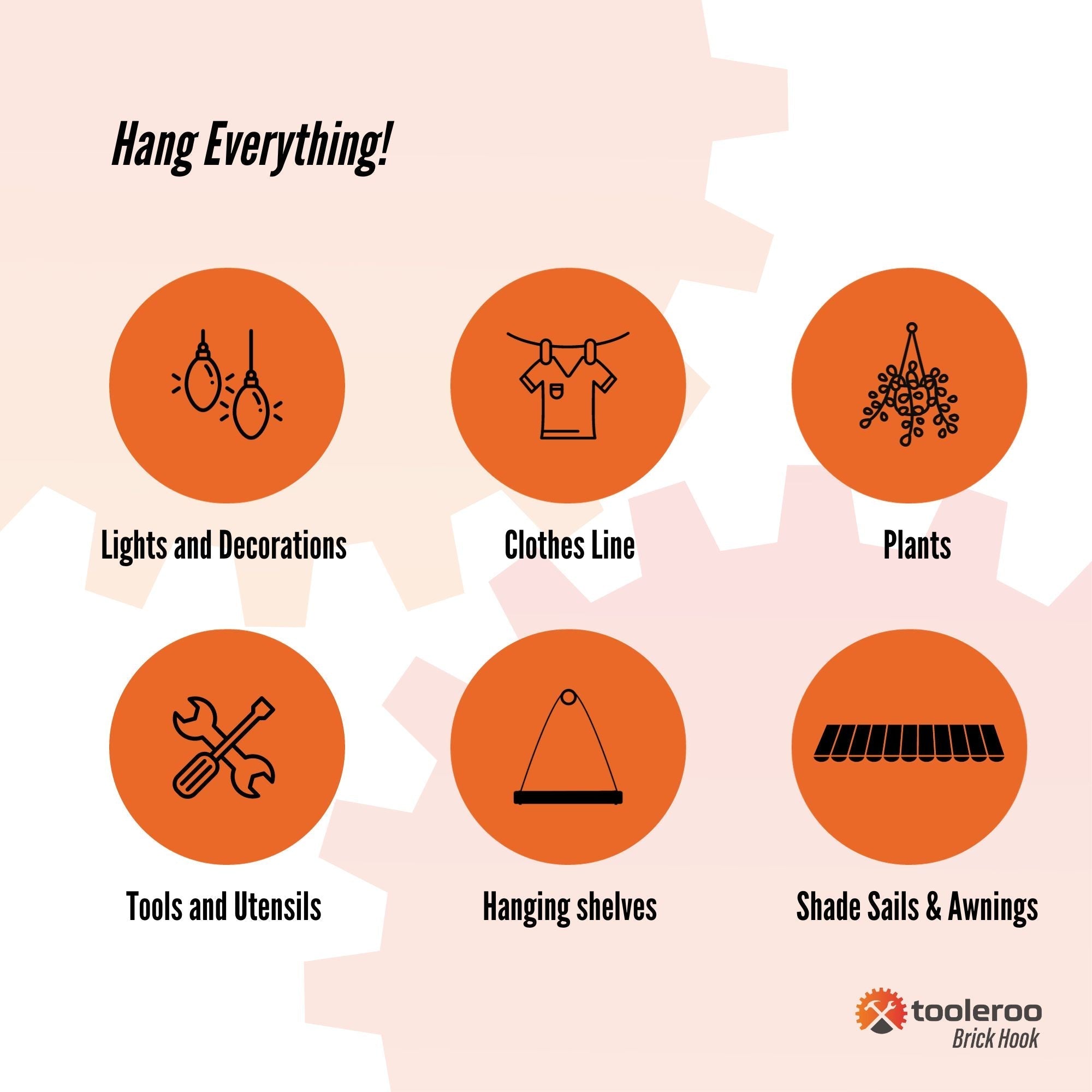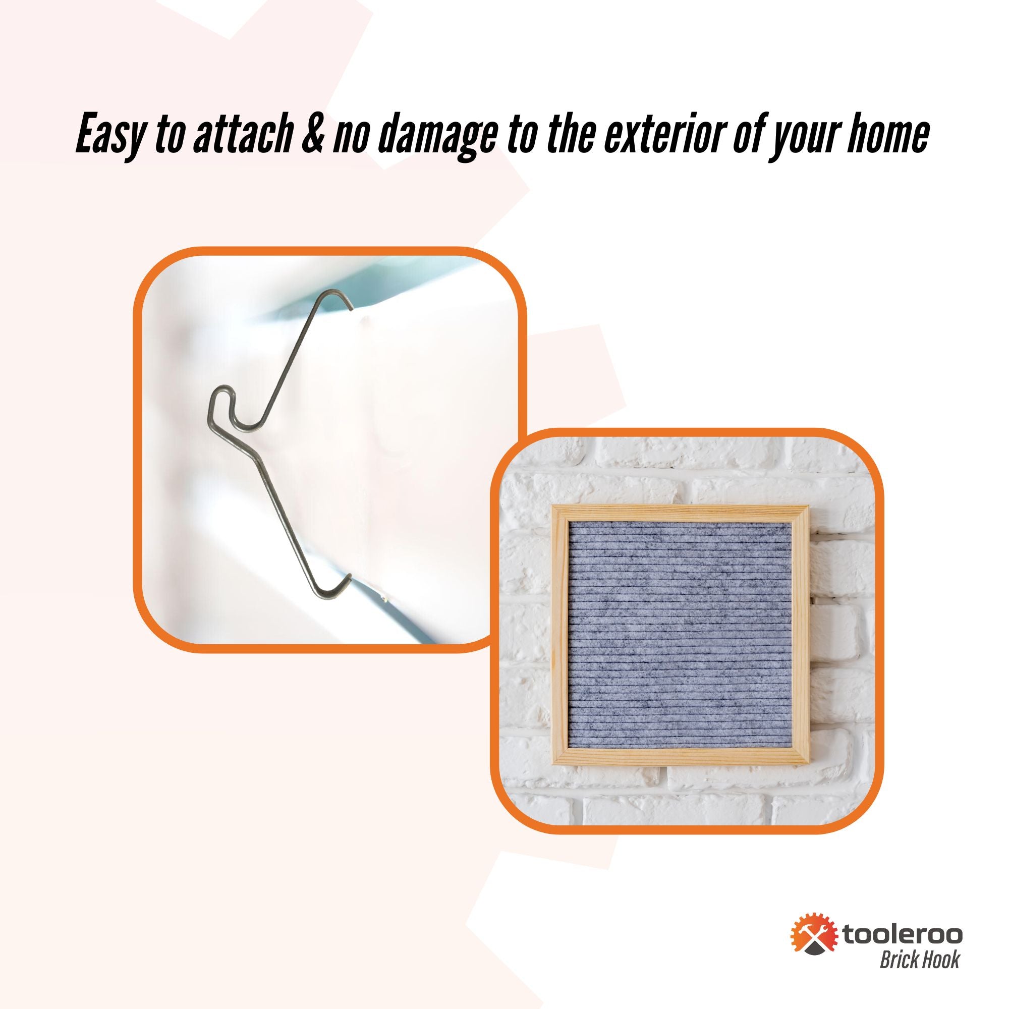 The Brick Hook is an easy to use spring steel clip that you can hang almost anything off your external bricks. Easy to attach to bricks, no tools, no holes and no damage to the exterior of your home.