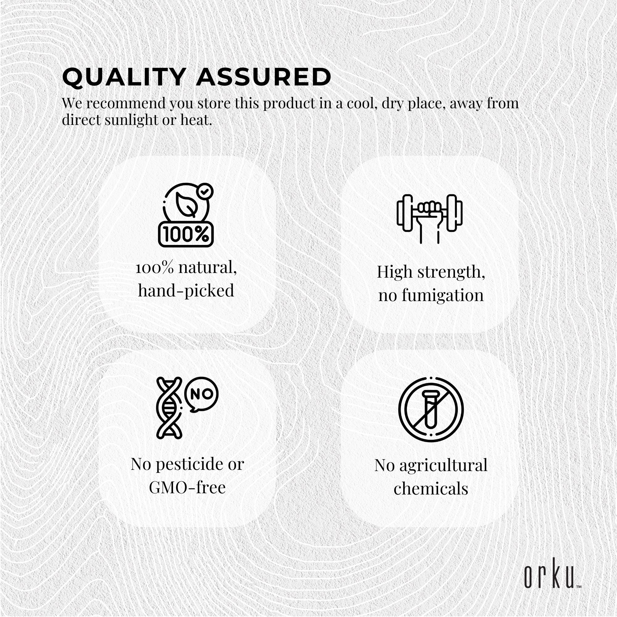 Our Orku one-time cold-pressed pure Ethiopian Black Seed Oil, is 100% natural, containing one of the highest levels of Thymoquinone (TQ). Slightly filtered, our black seed oil is non-refined, with no additives or preservatives, no agricultural chemicals or pesticides and is GMO free.