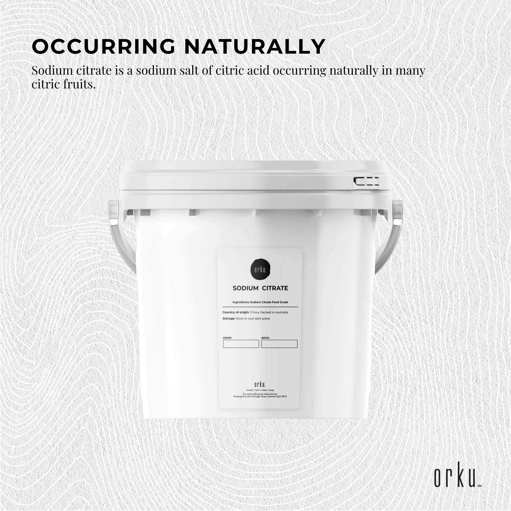 Sodium Citrate Powder in resealable bucket / tub.