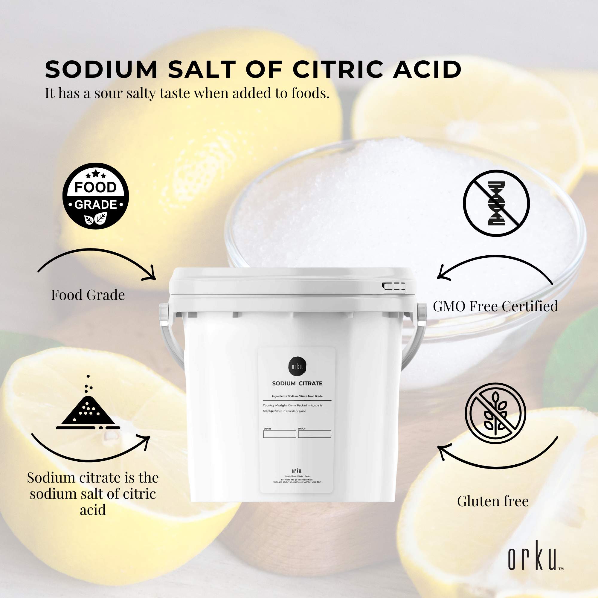 Our Sodium Citrate is fully compliant Food Grade GMO Free Certified. Packages come in quality sealed and resealable bags.
