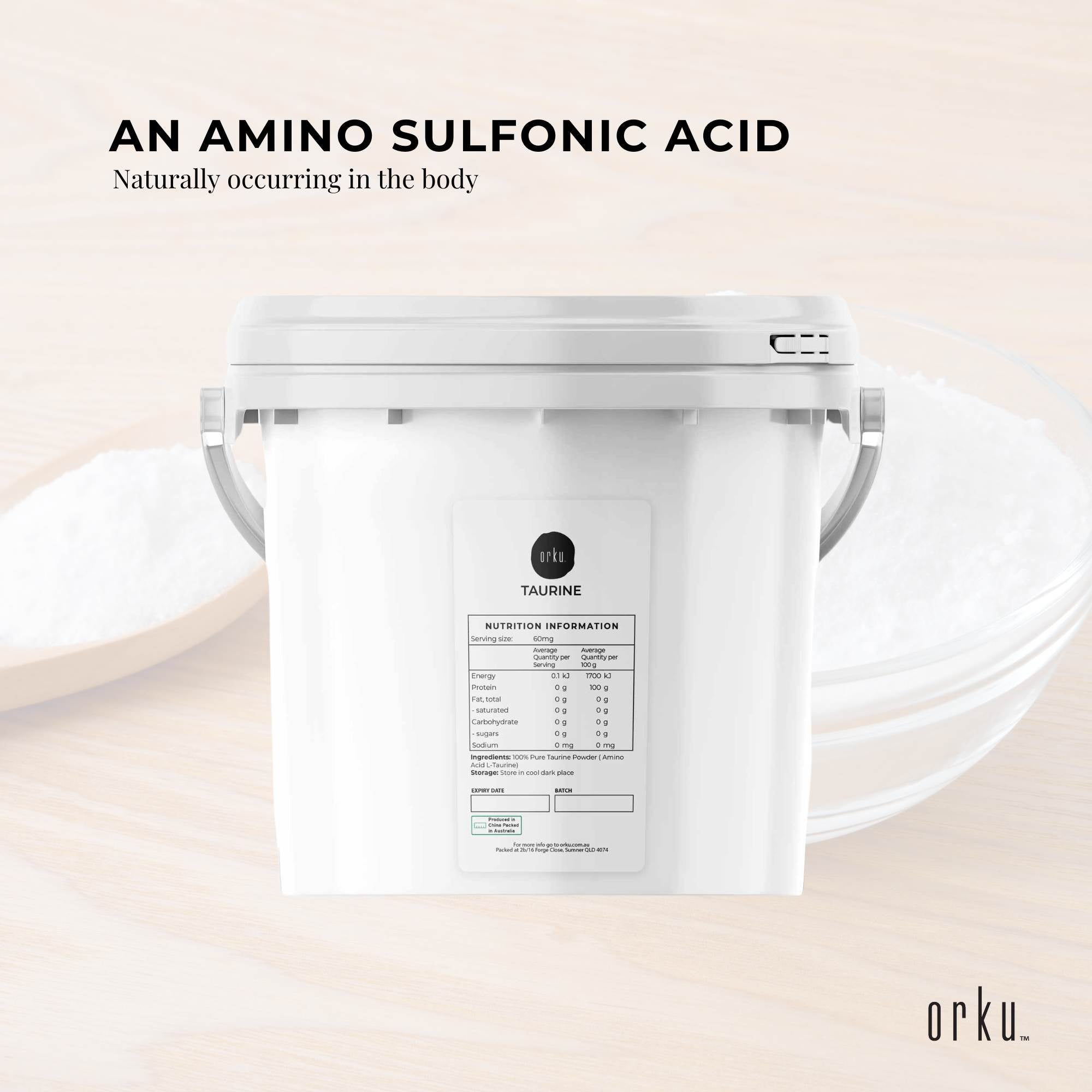 Our Taurine powder is 100% Pharmaceutical and Food Grade Australian Certified Supplement.