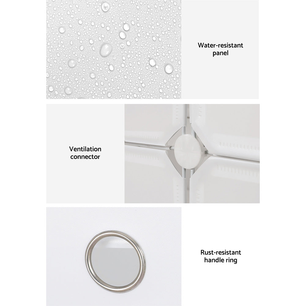 As your shoe collection grows, so should your shoe storage. An Artiss Shoe Cabinet is exactly what you need to keep loose shoes tidy and organised. Made from eco-friendly PP plastic and a strong steel frame, this multipurpose storage cabinet has a 2.5kg weight capacity per shelf, making it ideal for shoes as well as bags, coats or other items to help start your day. The micro-slit design between panels allows for easy ventilation, preventing bacteria growth, mould growth, and odours. Each panel is water-resistant with a rust-resistant handle ring for each door, making it easy to clean and maintain. Your purchase comes with accessories for two unique cabinet configurations, and shelves can be easily added or removed to store differently-sized shoes. You can even expand your shoe cabinet to fit your current storage requirements: simply visit our store and purchase additional units to multiply and expand. With so many options at your disposal, it’s easy to see why the Artiss Shoe Cabinet is the right choice for your entryway, bedroom, or walk-in wardrobe.