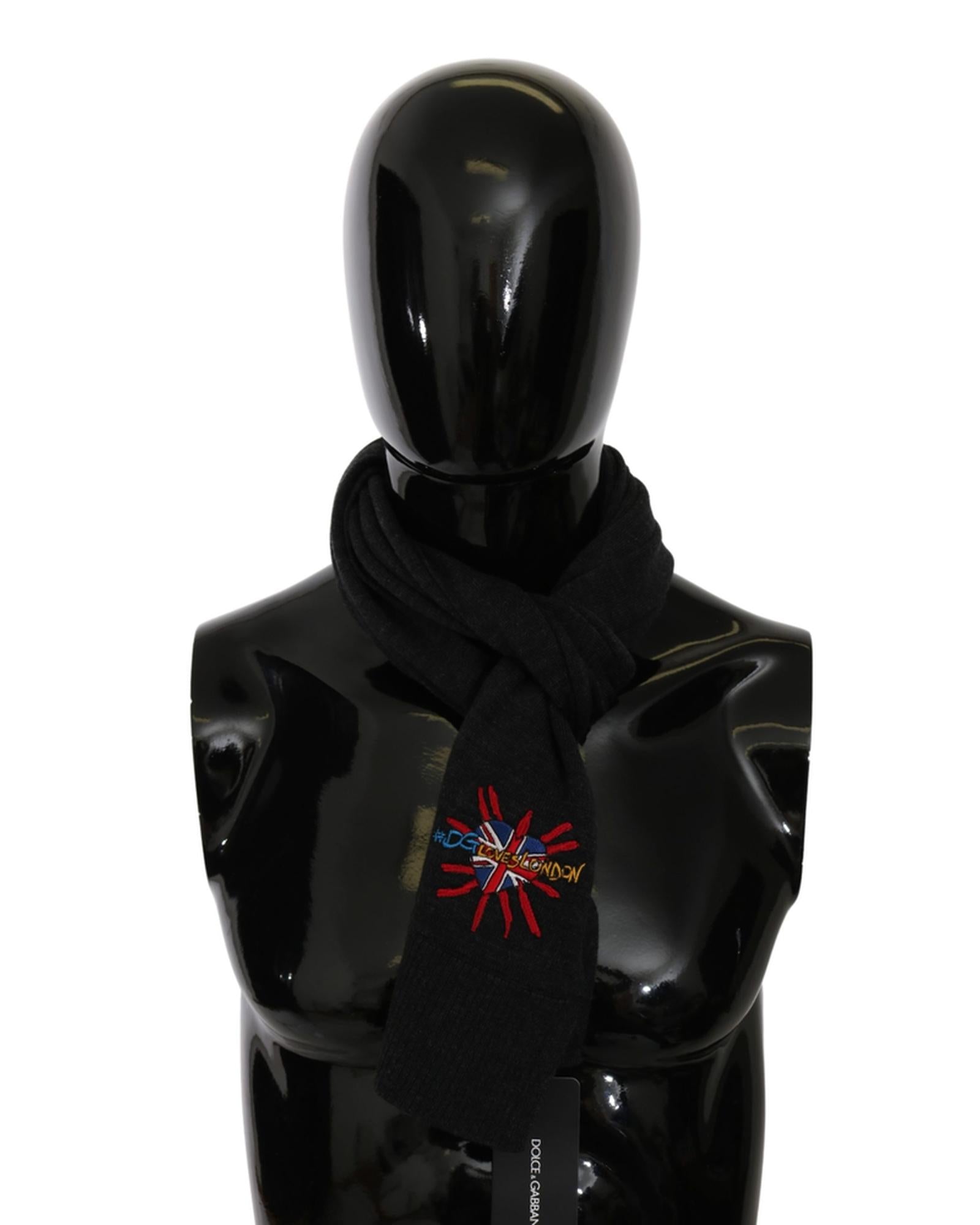 Authentic Dolce & Gabbana Gray Wool Scarf with Embroidered Details One Size Men