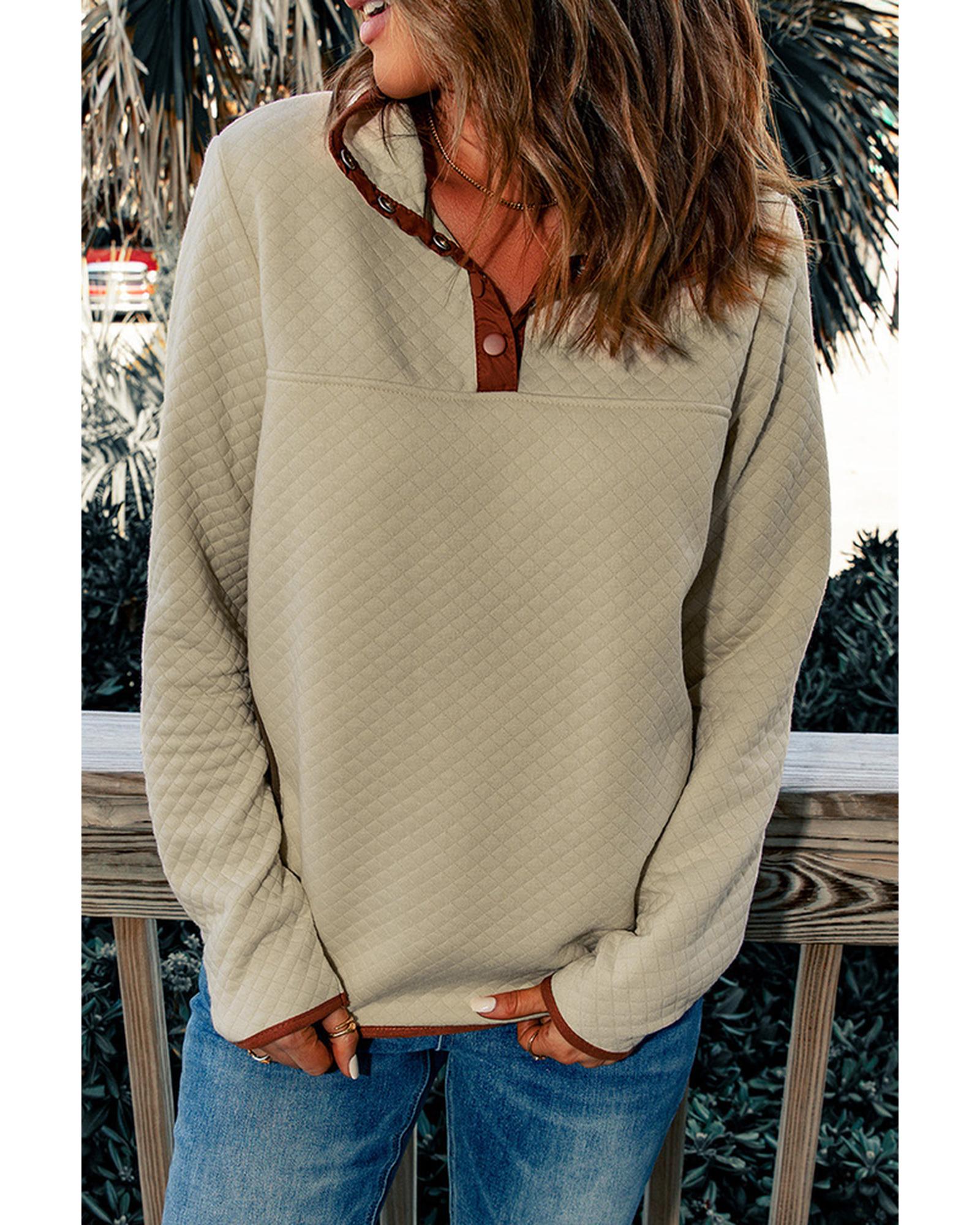 Stylish and comfortable pullover sweatshirt Neutral beige color Snap button closure Contrast binding details Quality and durable...