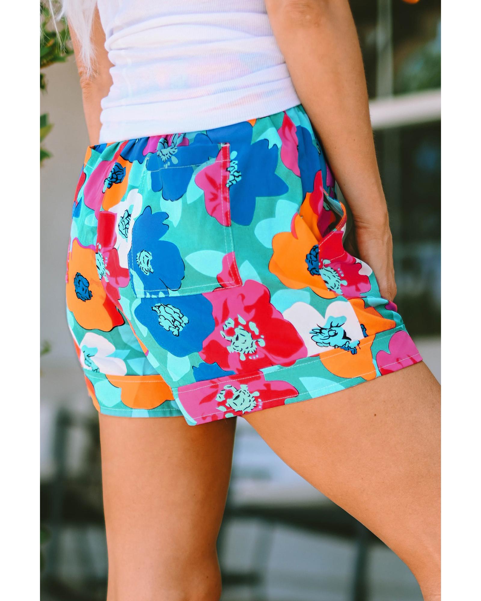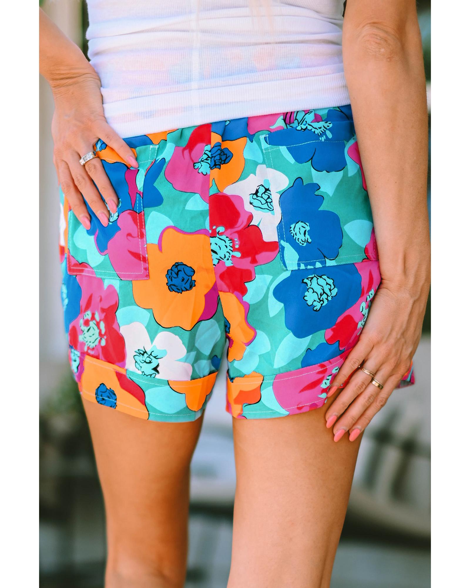 Decrease quantity for Azura Exchange Floral Print Drawstring Waist Casual Shorts - L
