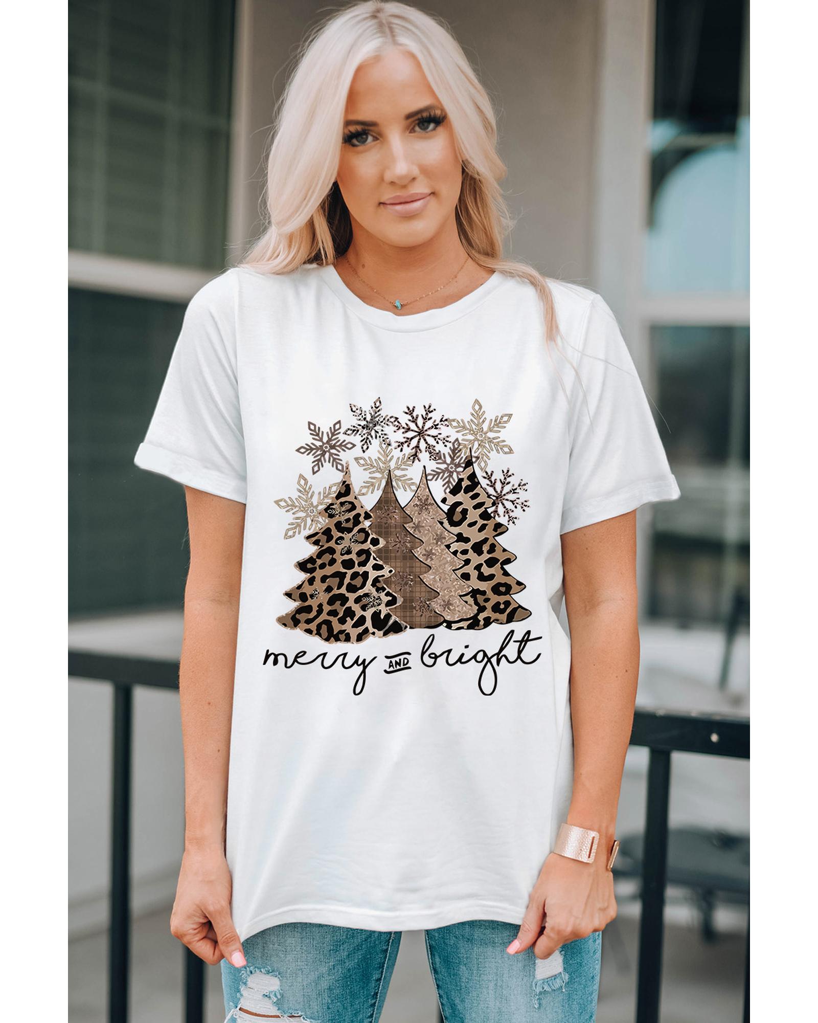 Womens crew neck t-shirt Leopard Christmas tree graphic print Quality fabric for a comfortable fit Classic crew...