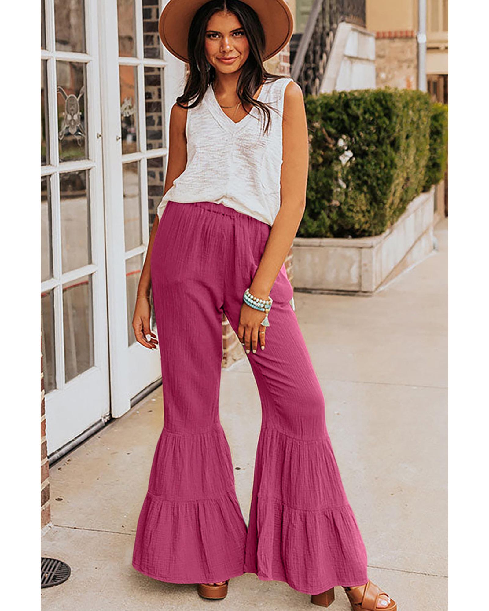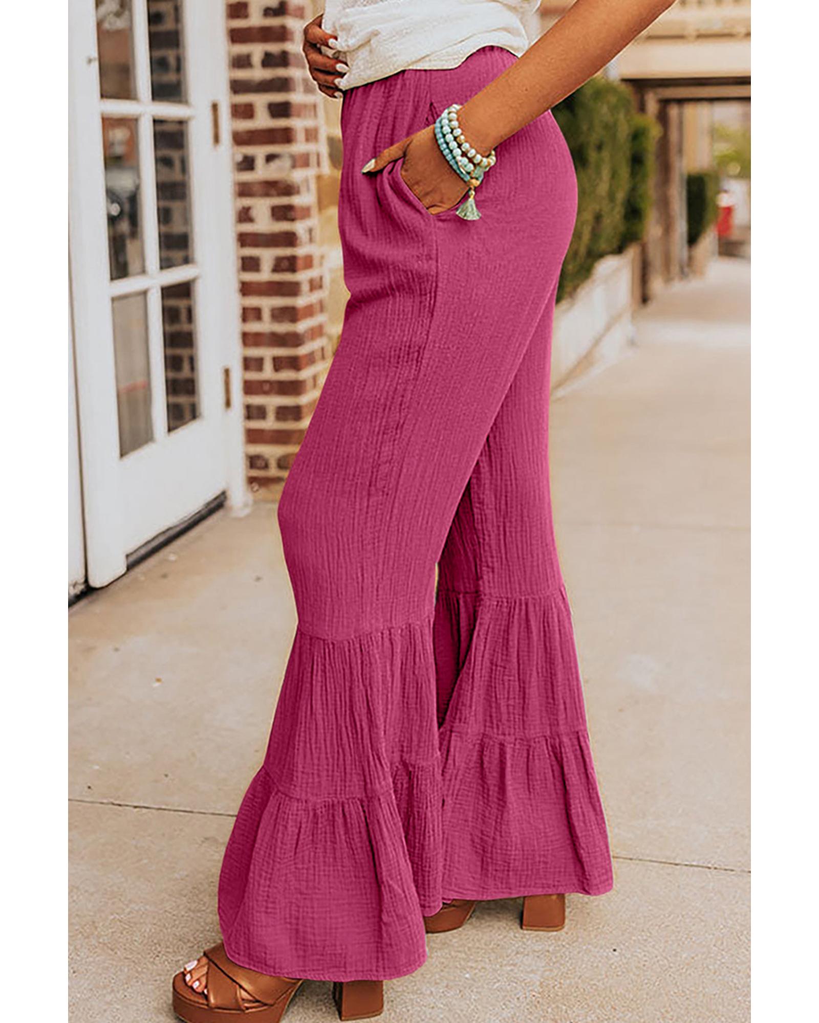 Decrease quantity for Azura Exchange Textured High Waist Ruffled Bell Bottom Pants - XL