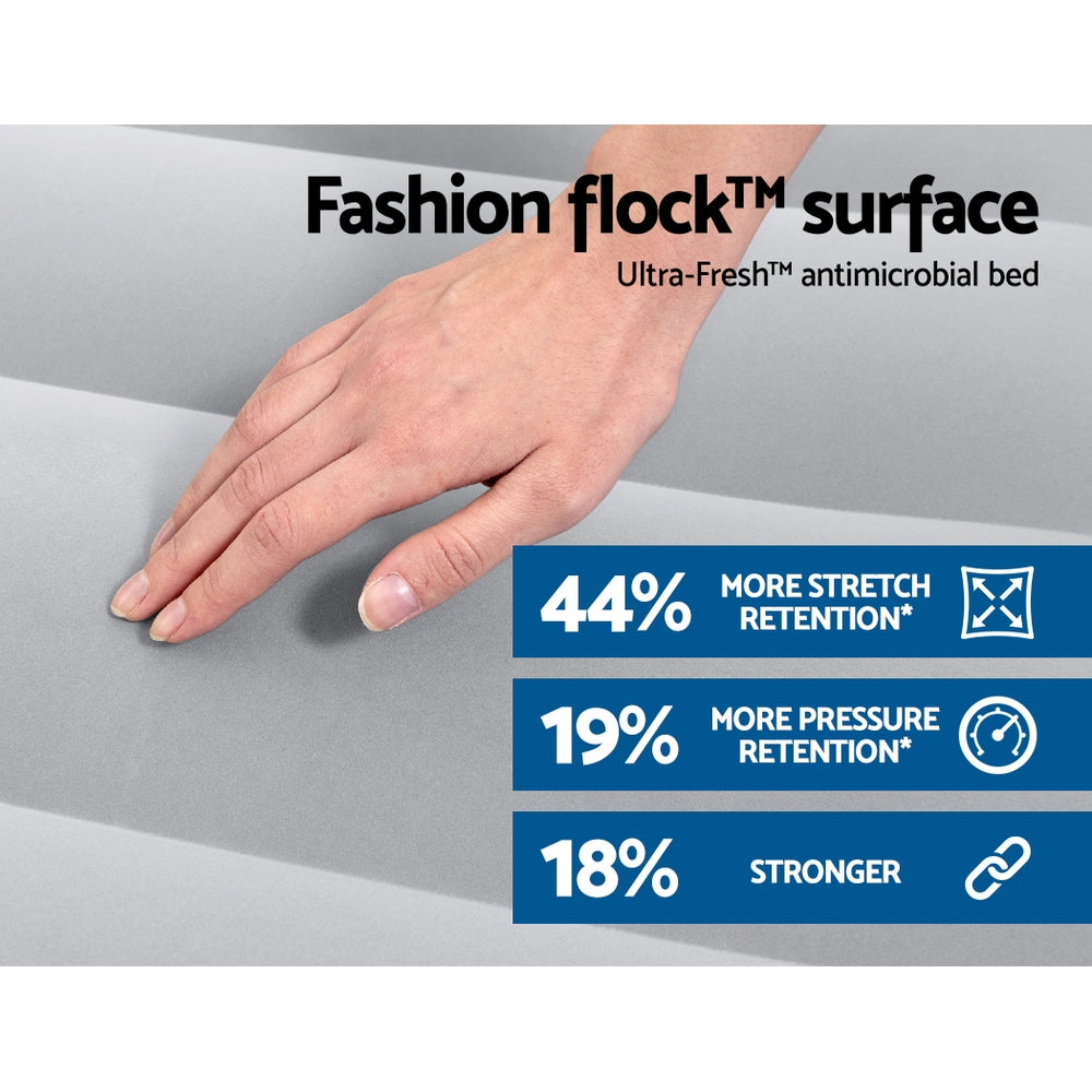 Look no further than a Bestway Air Bed for an easy-to-use portable mattress. With a built-in pump for easy operation, the bed can be inflated in under 180 seconds. Made from sturdy Tritech™ construction with a comfortable flocked sleeping surface, the bed is cosy and soft for a nice night’s sleep. The seamless craftmanship ensures the bed is strong, durable, and suitable for everything from camping to sleepovers. The applied antimicrobial treatment will prevent bacteria and mould growth, making the bed ideal for sensitive sleepers. The bed is suitable for both indoor and outdoor use and comes with a handy carry bag for portability. Enjoy a good night’s sleep anywhere with a Bestway Air Bed.