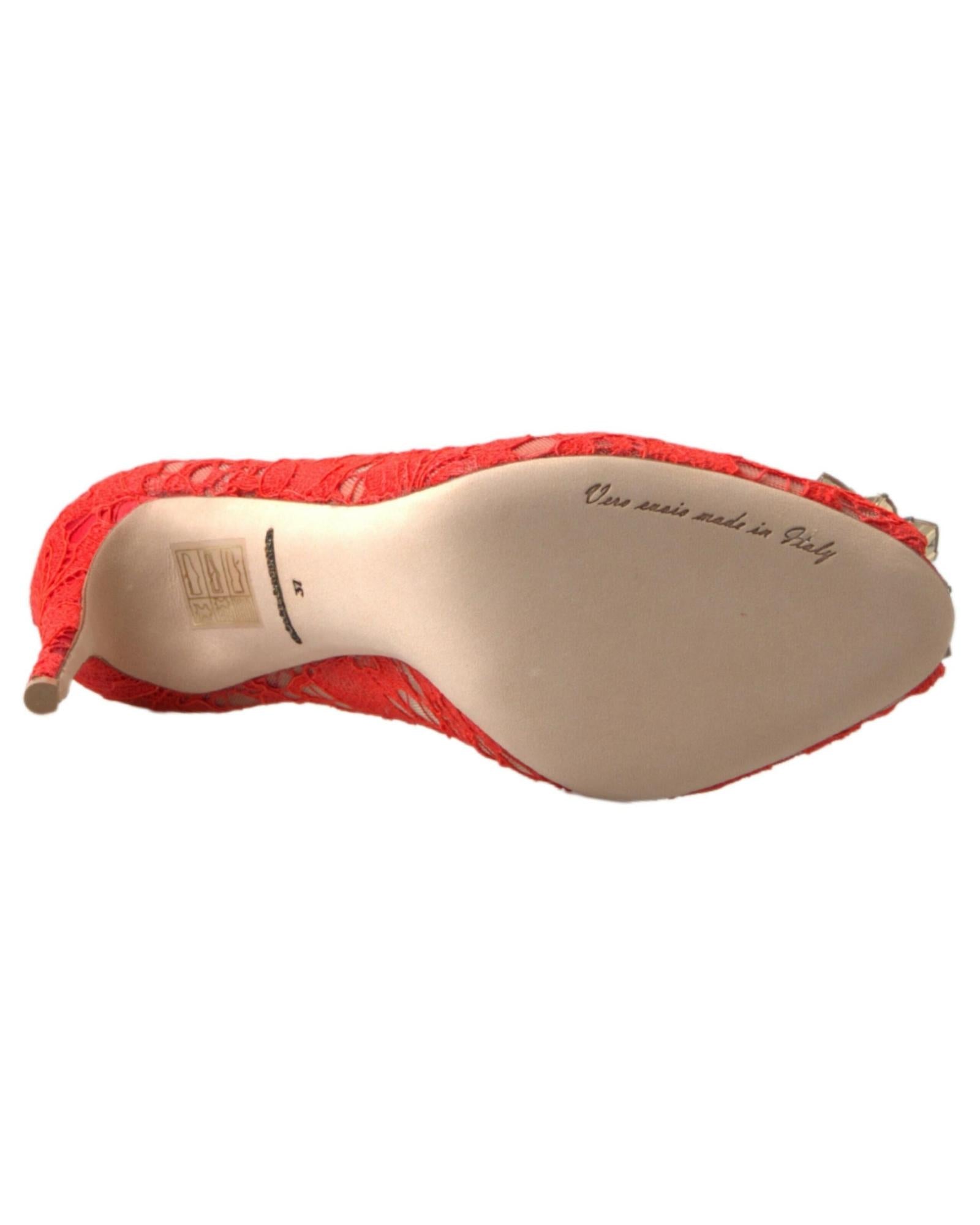 Dolce & Gabbana Women's Red Taormina Lace Crystal Heels Pumps Shoes - 37.5 EU