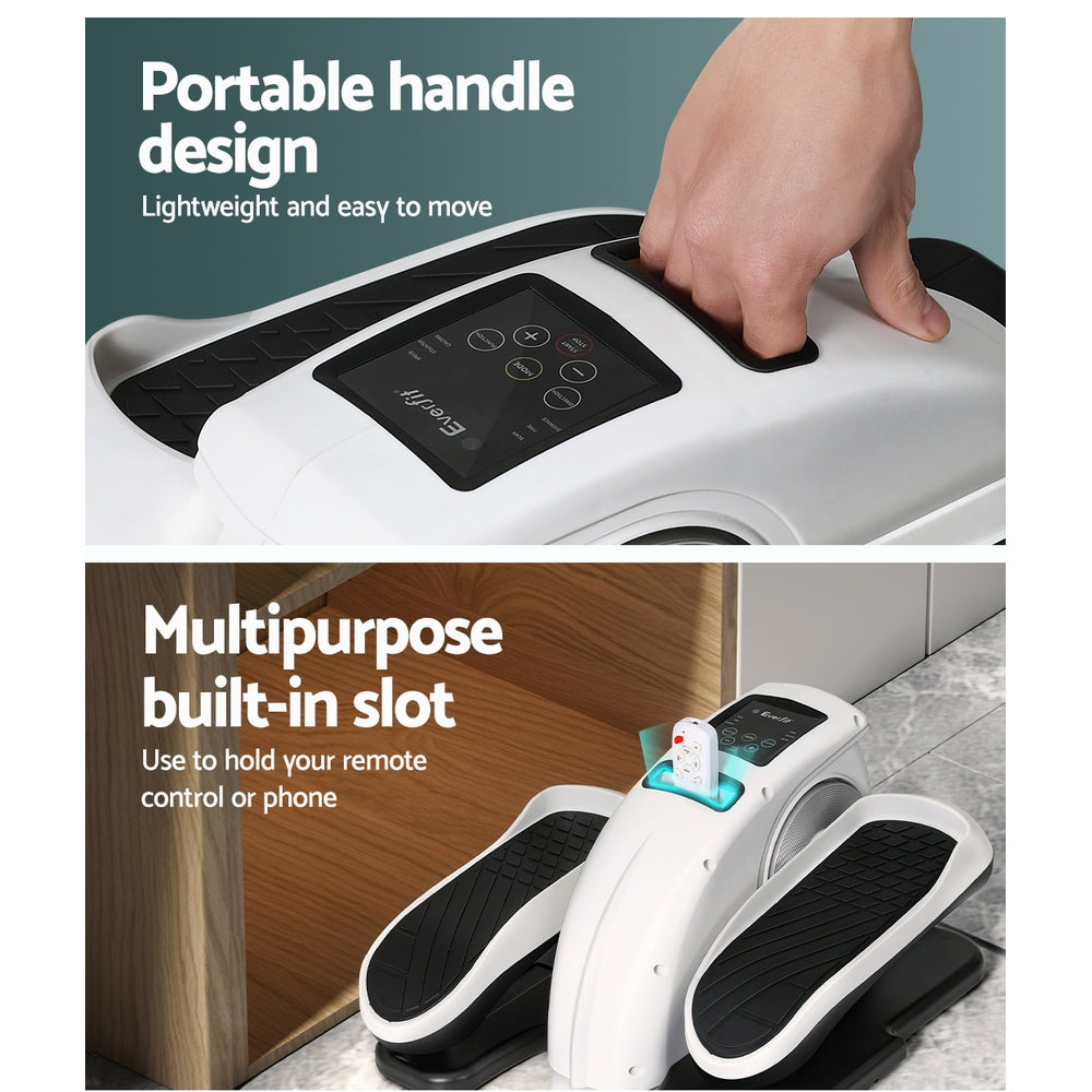 Be ready to exercise any time with the Everfit Pedal Exerciser. The machine is lightweight and portable, meaning you can use it anywhere – from the couch, from your home gym, in the living room or on the go. It functions as a stepper, an exercise bike and an elliptical trainer, so you can exercise in several different ways. Exercise manually or automatically and enjoy a quiet exercise session with a powerful motor but low noise. Comfortable pedal will keep your feet in place, while the ergonomic design won’t impact your knees. The clear multi-function LCD display shows several exercise parameters such as the time exercised, distance, speed and total calorie count. You can operate the exerciser manually or by remote control, which can then be stored in the convenient holder along with your phone or other accessories. A sturdy frame and non-slip feet keep you and the machine firmly in place. Best of all, the machine comes fully assembled and ready to perform. Get moving from anywhere with a Pedal Exerciser from Everfit.
