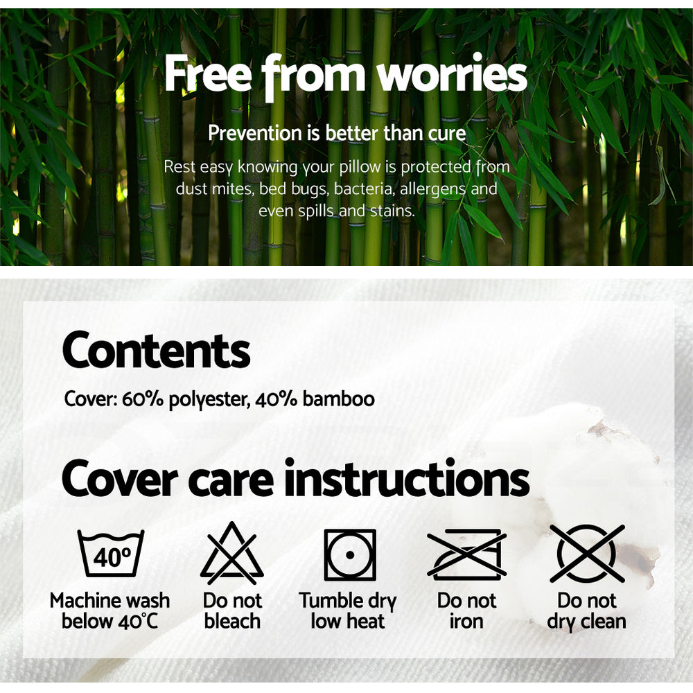 2 x Bamboo Fabric Cover Shredded Memory Foam Pillow 70 x 40 cm