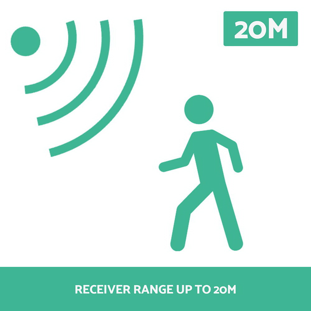 * Receiver range: ≤20m. Range can be reduced to 30% in bad weather conditions.