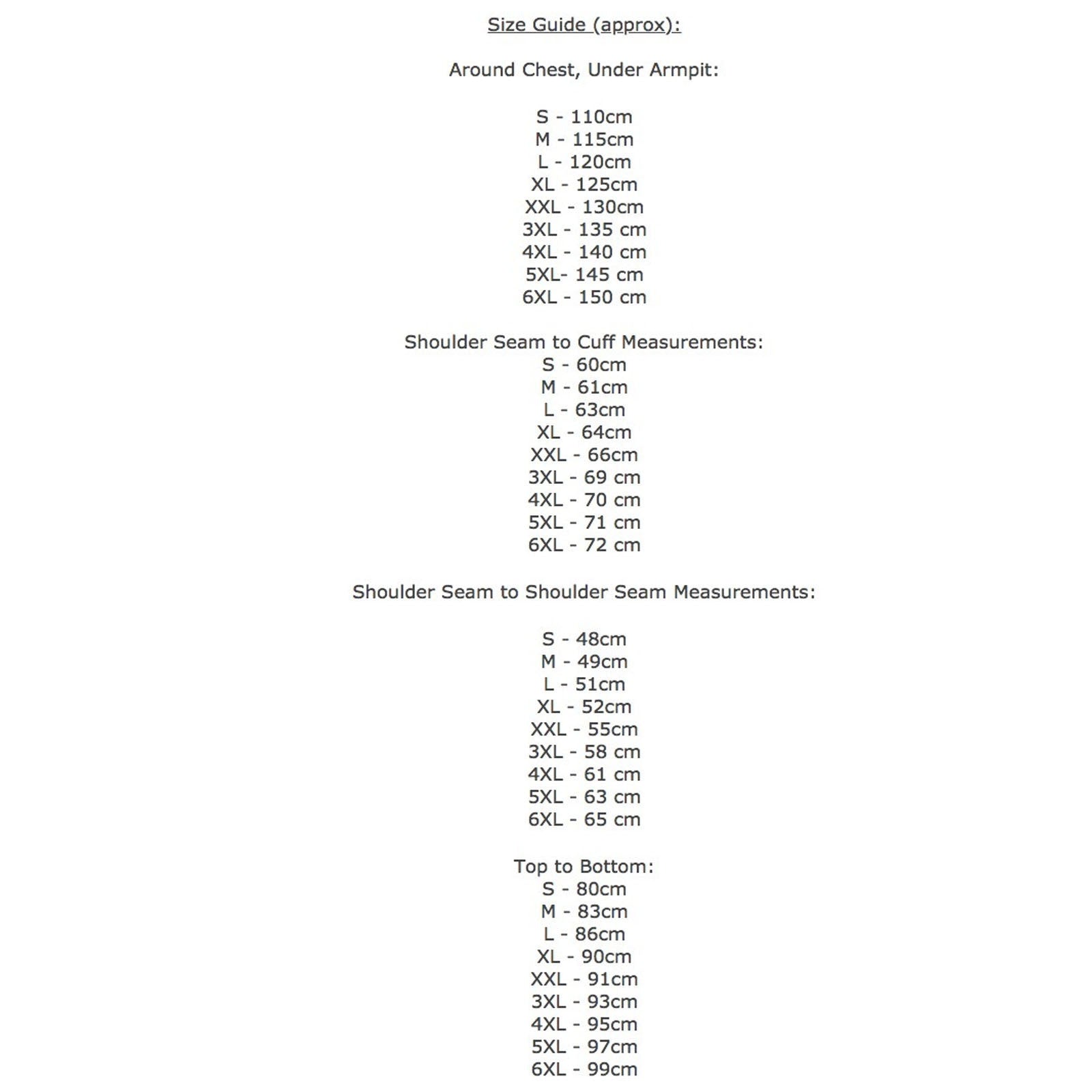 • Available sizes: Small --> 6XL!