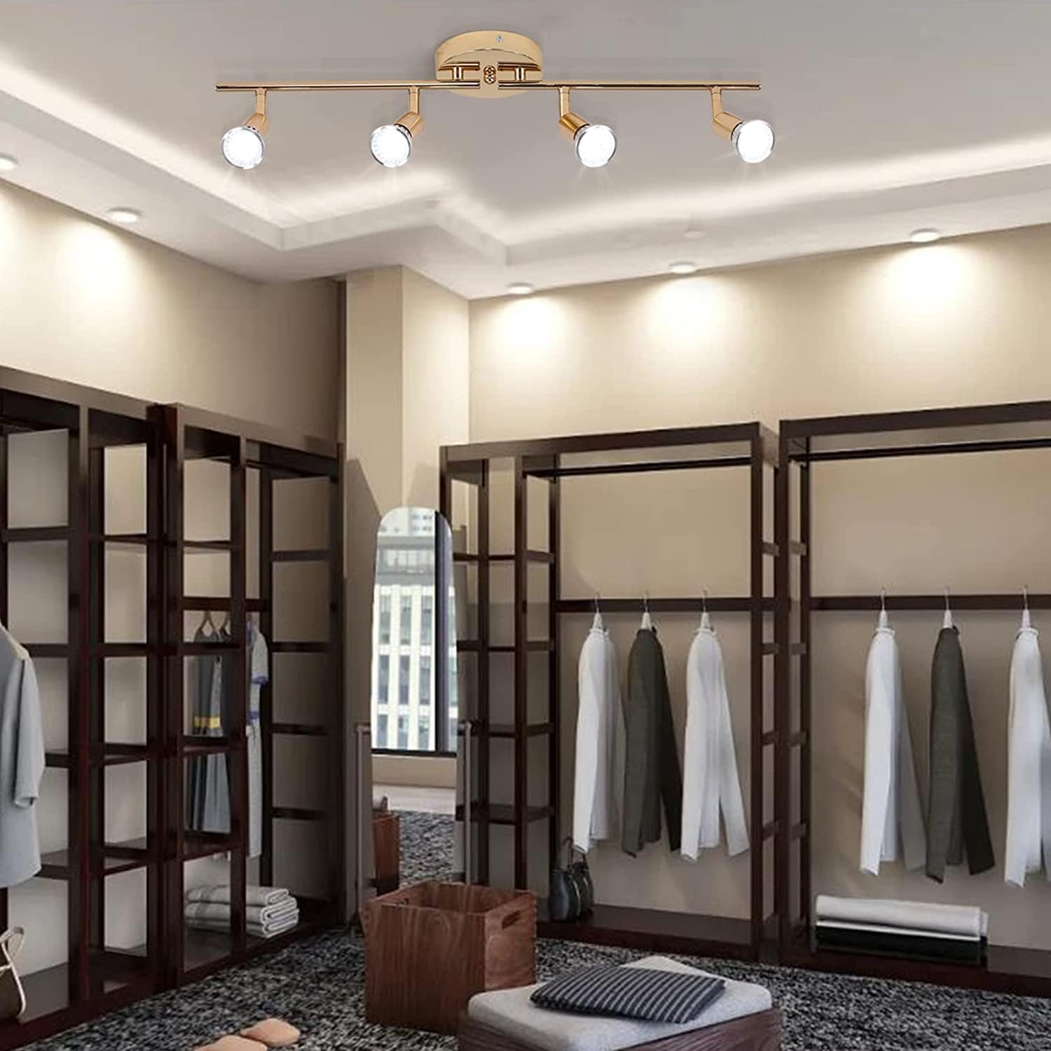 - This LED ceiling spotlight features four independently adjustable track heads, allowing you to focus the light exactly where you need it. Showcase artwork in an artist studio or gallery, or create the perfect ambiance in your living room, kitchen, sink, dining area, closet, restaurant, bar, or cafe. With its rotatable light heads, you can move the lights around to spot whatever you want to highlight.