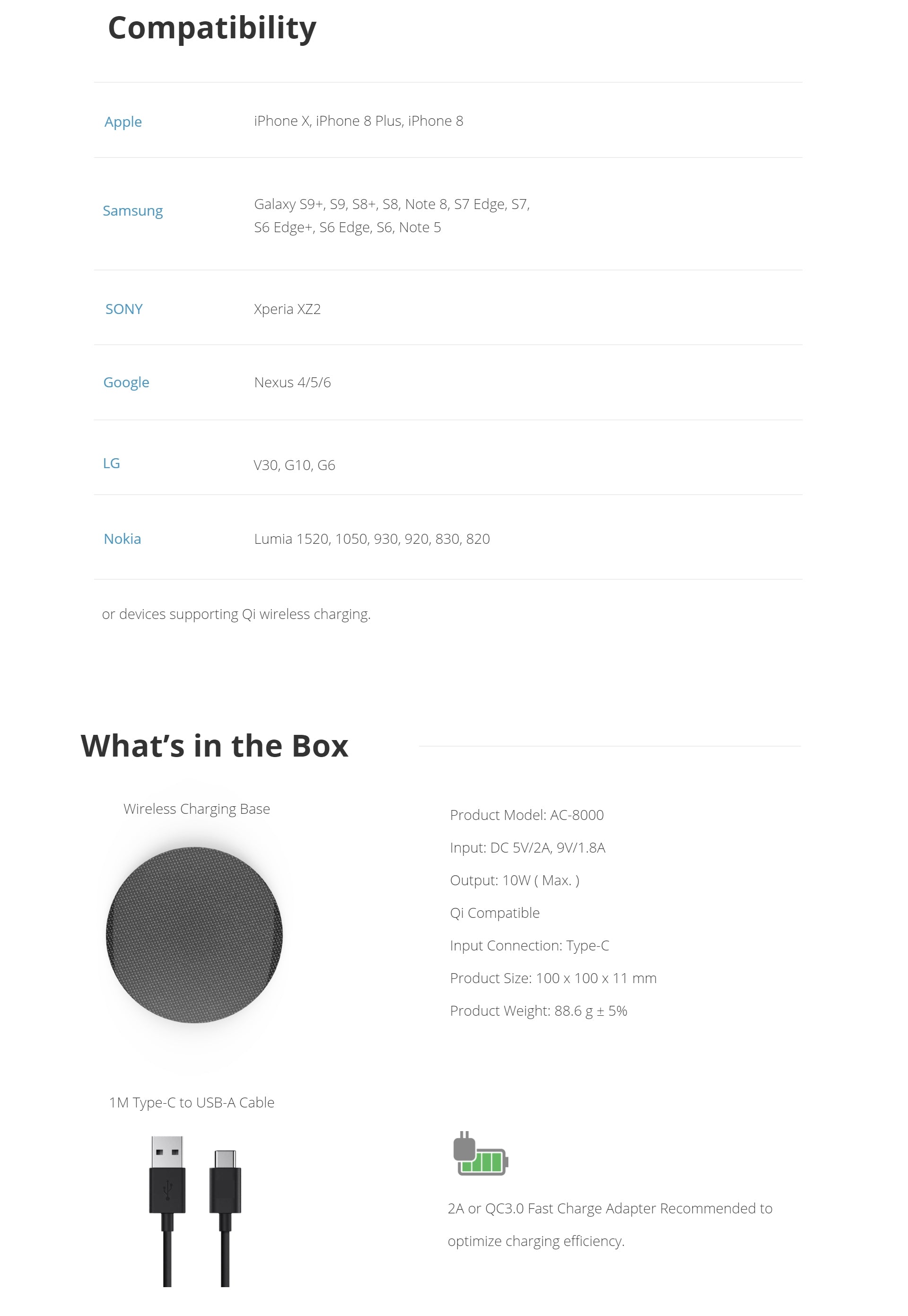1 x Photofast AirCharge Qi Compatible 10W Fast Charge (SKU:AC8000)