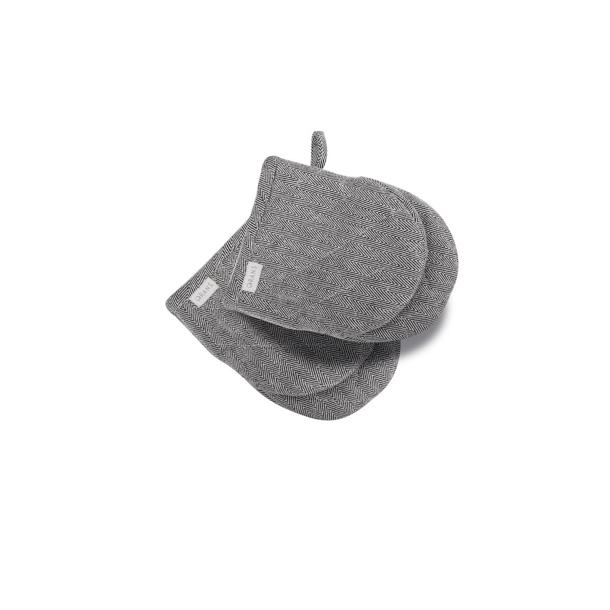 The Herringbone Black Premium Cotton Kitchen Range by Rans comes in shades of white and black, and contains matching Aprons, Oven-Gloves, Double Mitts, Pot Holders, and Duck-mouth Gloves. The Herringbone collection has gorgeous and chic V-shape pattern design. Made from 100% cotton, this padded Herringbone Double Mitts will protect your hands when handling hot pans and baking dishes. It's decorated with a traditional Herringbone pattern in different colours to bring a touch of classic charm to your kitchen, and even features a convenient loop, so when you're done, you can hang your Double Mitts from a hook in your kitchen.
