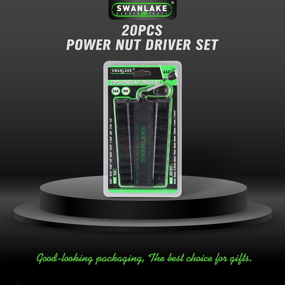 This 20pcs nut drive set is forged from high hardness chrome vanadium steel. The surface is treated with anti-corrosion sand blasting. After the whole high temperature quenching heat treatment, the product has high hardness and is durable.