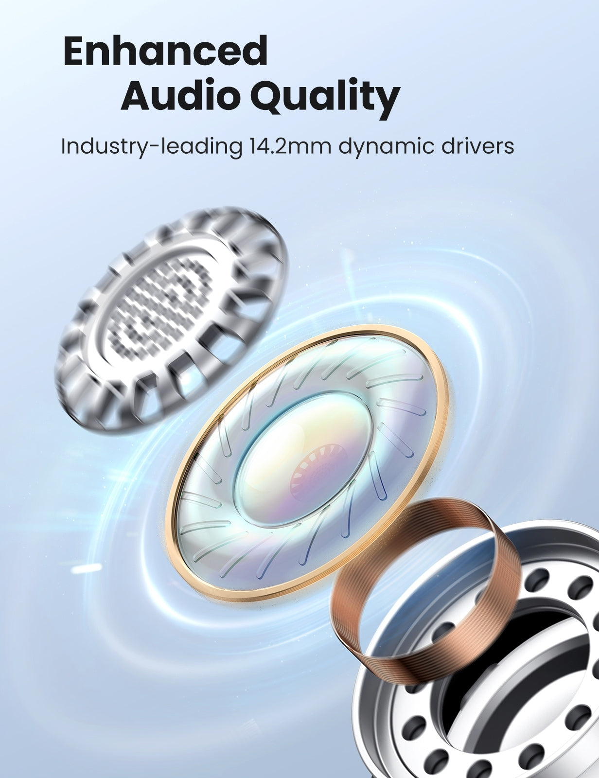 Each earbud comes with 2 advanced microphones, one effectively reduces the background noise and the other one picks up and enhances your voice, ensuring crystal-clear phone calls even in a noisy background.