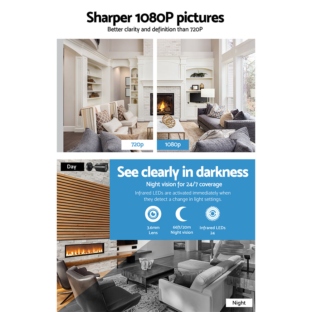 Utilizing the latest security monitoring technology, our weatherproof CCTV system is designed for both indoor and outdoor use and features record, playback and search modes. The high resolution makes it easy to identify facial features, license plates and clothing patterns for total convenience in the event of any home invasion or break-in. With its huge hard disk storage, the System enables you to review your recordings even from quite a while back. You'll be glad to know too that your data will be also be protected from any power outage.
